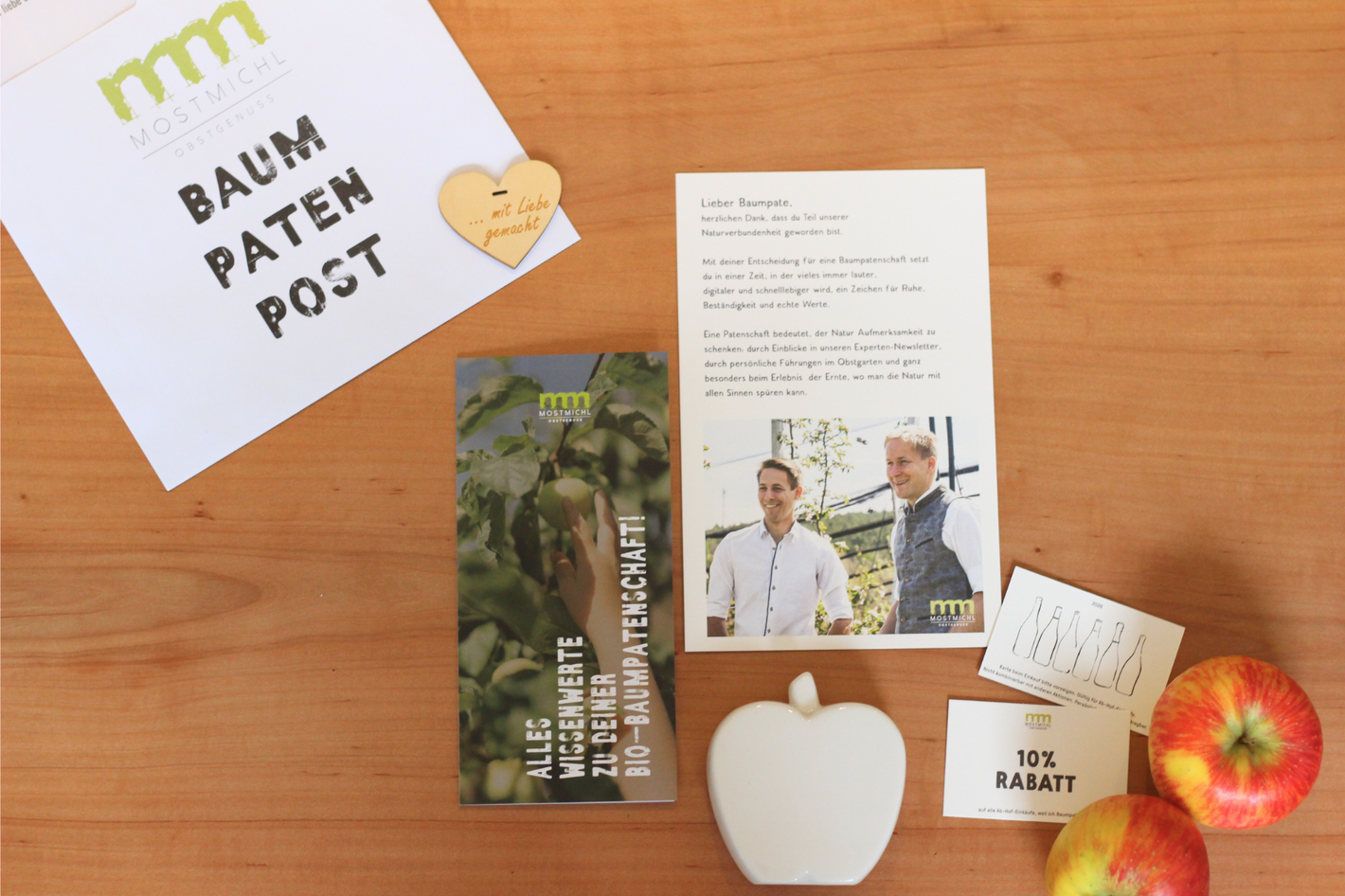 Das Willkommenspaket enthält dein persönliches Zertifikat, Informationen über deinen Baum sowie kleine Überraschungen, die eine Bio-Baumpatenschaft zum Erlebnis machen.